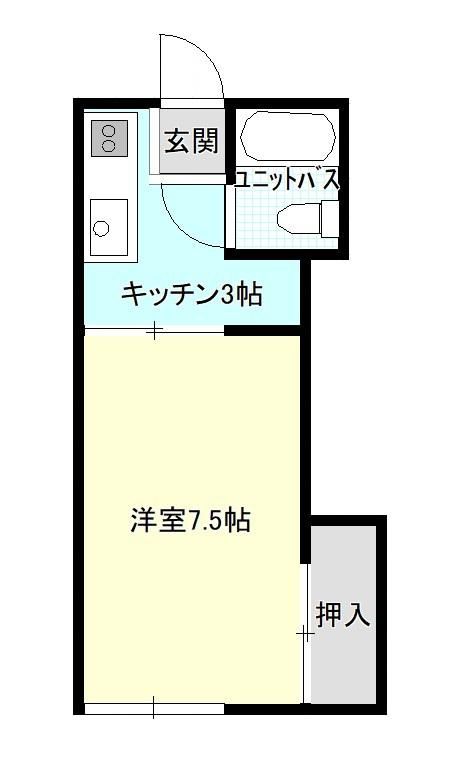 1DK、シングル向け。DKなので、台所がちょっと広め