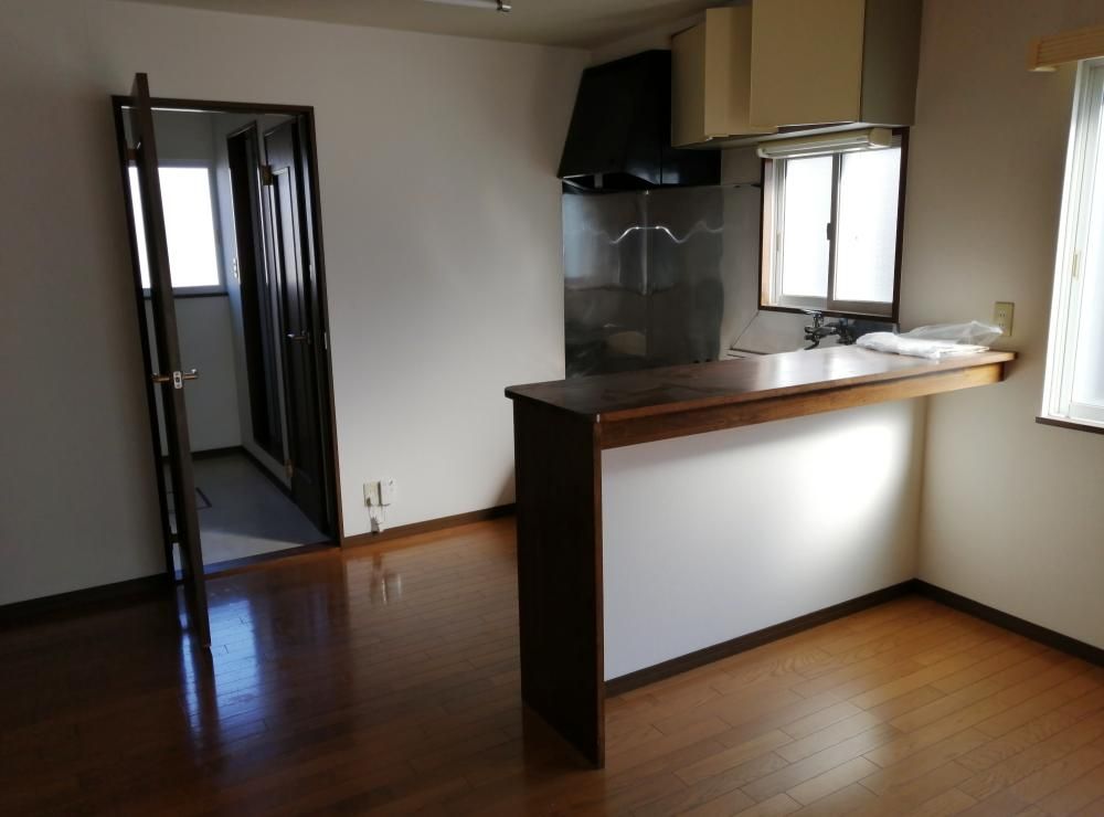 【建物外観】 堅田4丁目のアパートです。 【間取】  【居間・リビング】 13帖LDK。キッチンカウンターがあって便利です。 【キッチン】 壁付けでコンパクト。 【キッチン】  【その他設備】 エアコン1台設置済み。 【居間・リビング】 8帖洋室。 【収納】 クローゼットが2つあり、コートもかけられます。 【その他設備】 灯油ストーブ設置済み。 【洗面所】 シャワー付きで使いやすい。 【トイレ】  【その他部屋・スペース】 洗面化粧台の隣に洗濯機置き場があります。 【バス】  【セキュリティ】 インターホンはモニター付きで、来訪者の姿が確認できます。 【玄関】 シューズボックスあり。 【駐車場】 2台で月3,000円です。 【その他共有部分】 敷地内にゴミ捨て場あり。