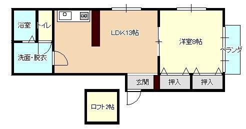 築年月 1999年10月  間取り 1LDK( LDK13畳(2階)/洋室8畳(2階) ) 専有面積 51.34m2