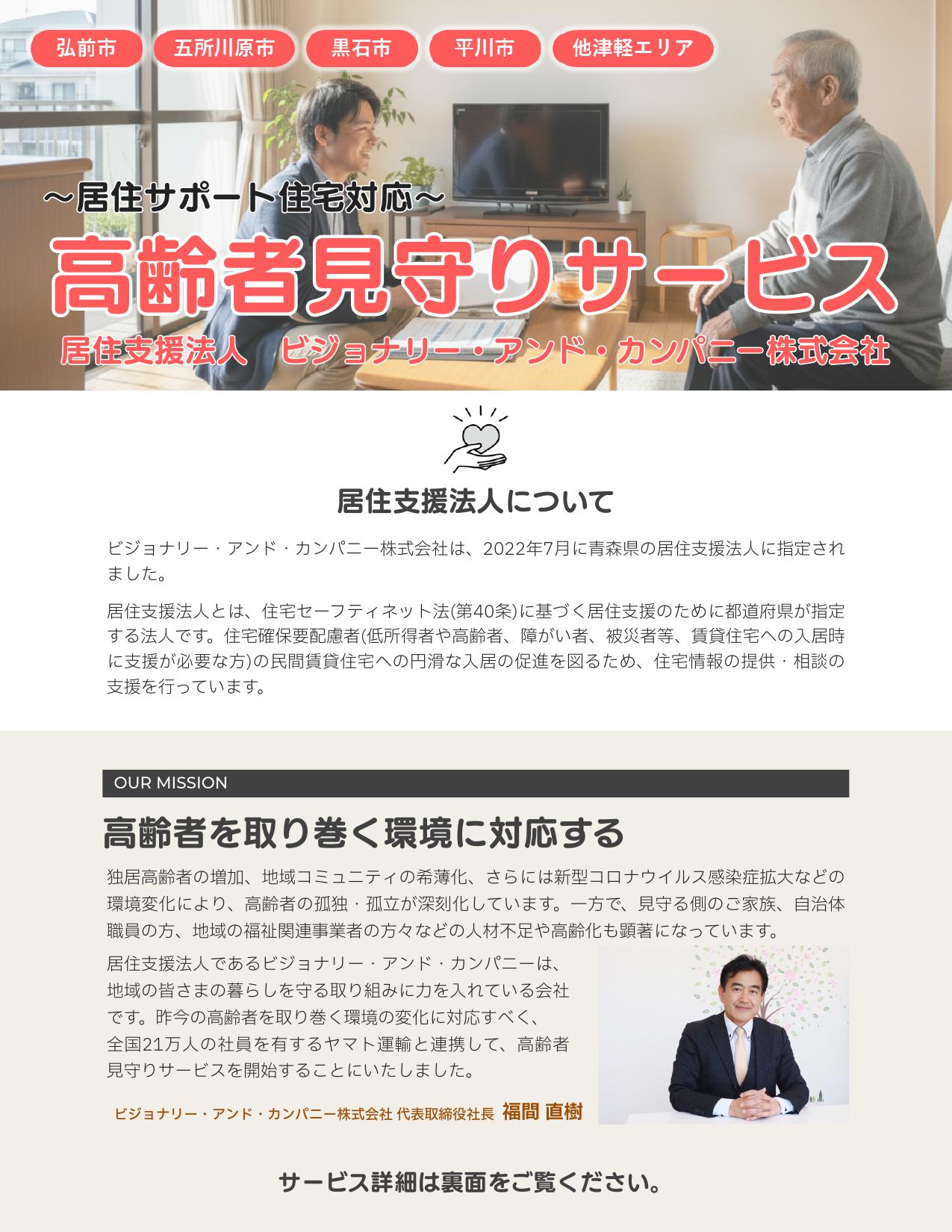 ビジョナリー・アンド・カンパニー株式会社は、2022年7月に青森県の居住支援法人に指定されました。